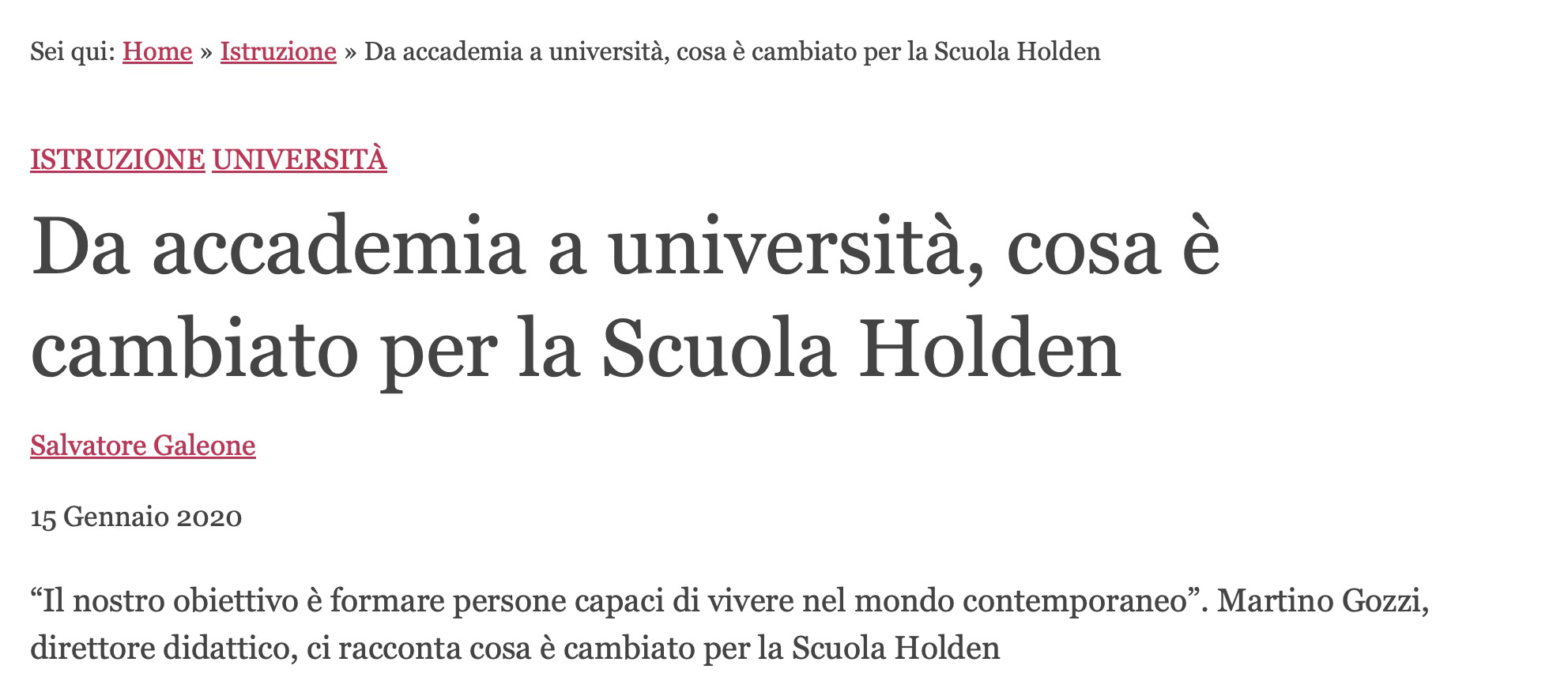 L’autrice è disponibile a ospitare una replica ufficiale da parte della Scuola Holden o dagli enti pubblici e ad integrare il presente articolo con eventuali chiarimenti.