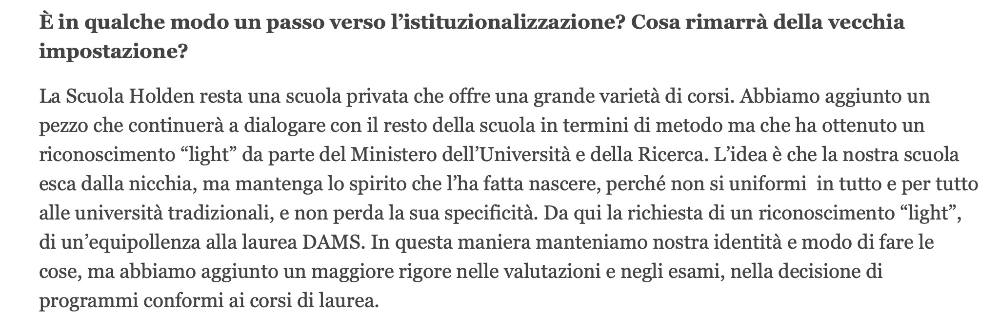 E allora la domanda è inevitabile: se la laurea Holden è nata da un decreto speciale, pensato dentro la cornice della Buona Scuola, e se il riconoscimento è stato dato prima ancora che il corso esistesse, che garanzie avevano davvero gli studenti?