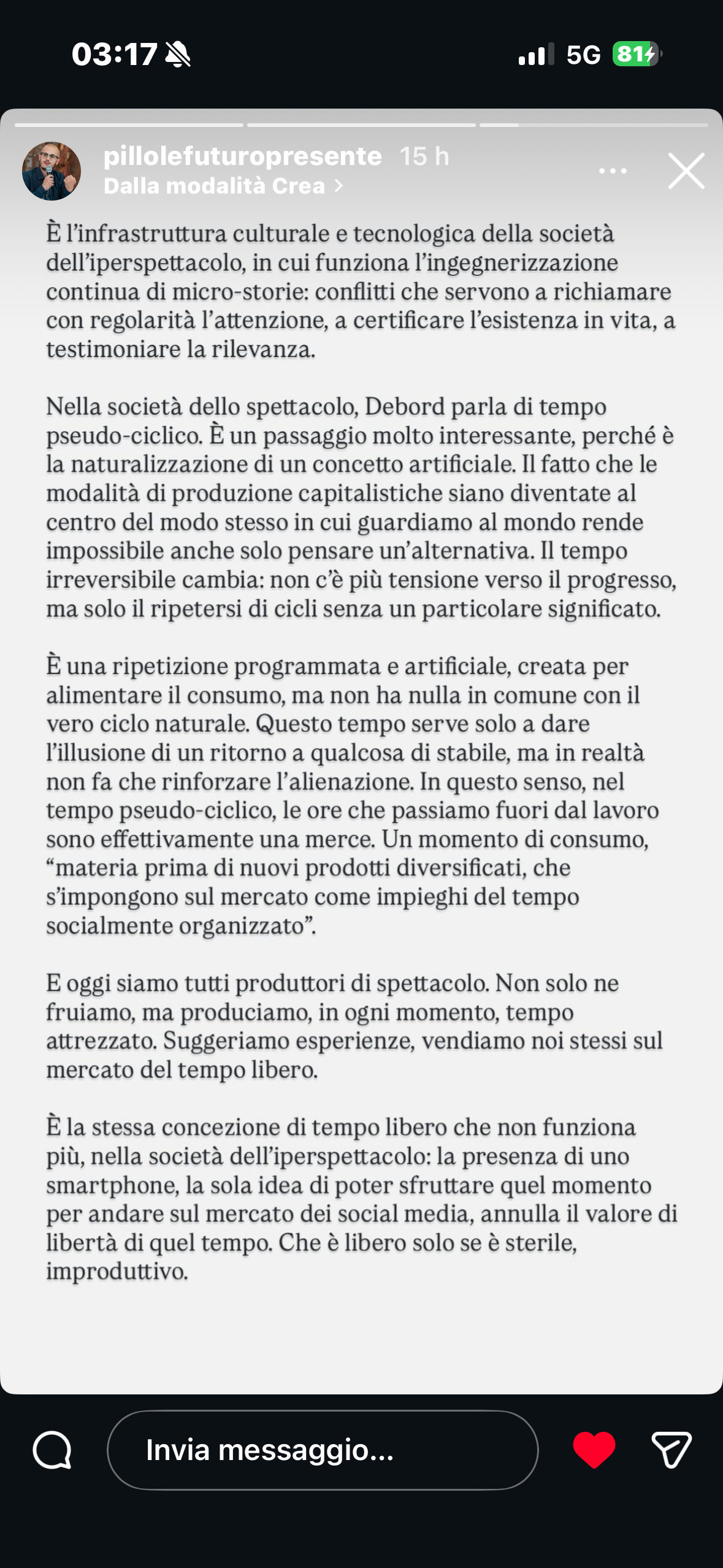 In ultimo vi lascio con l’ultima riflessione di che devo ancora ben sedimentare dentro di me prima di poterne parlare.