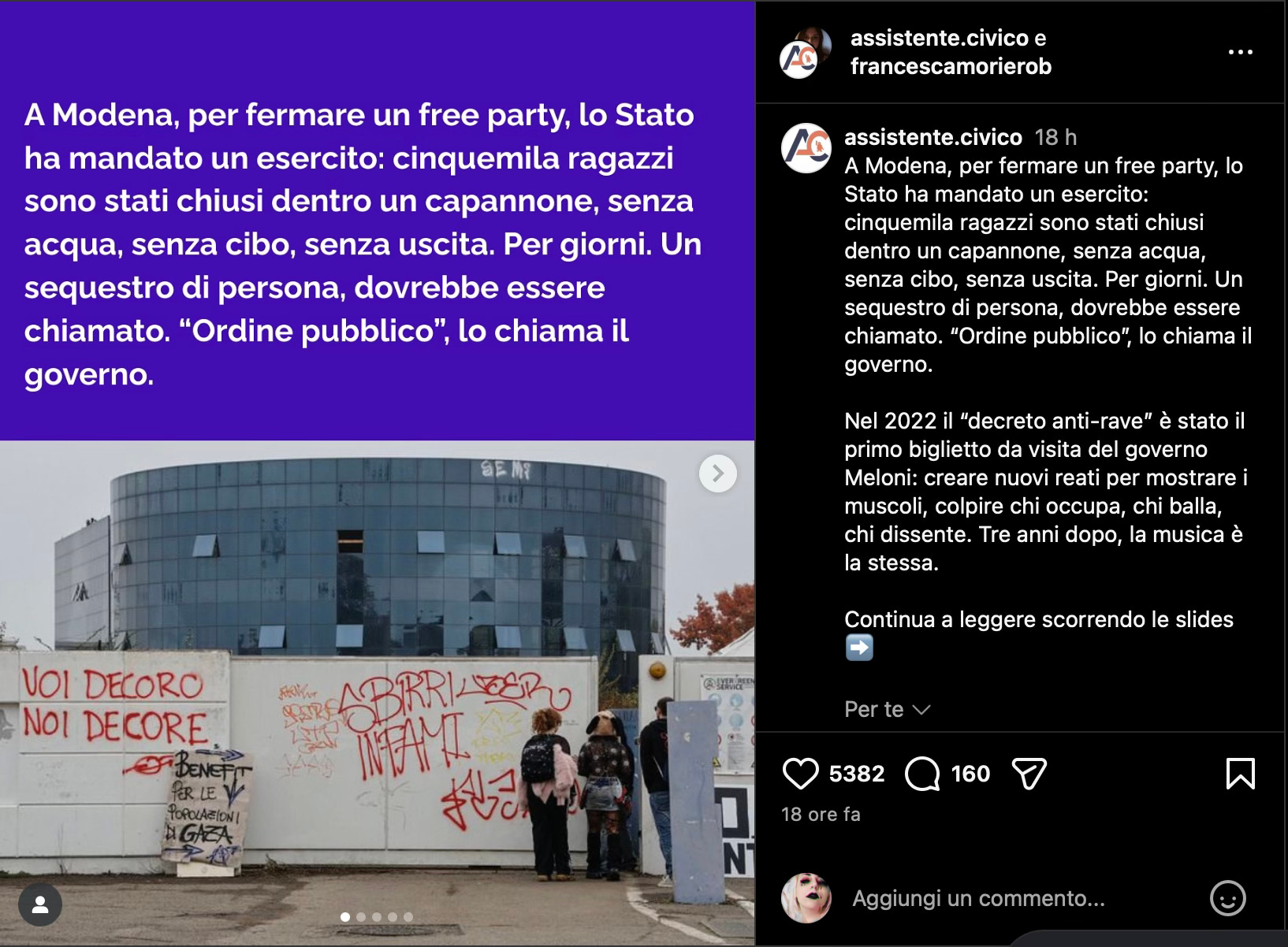 Parlerò partendo da questa vicenda (e altre capitate negli ultimi anni) del mondo della cultura rave, movimento che è parte della mia identità politica, ora mi sembrava doveroso dirvi che è successo.