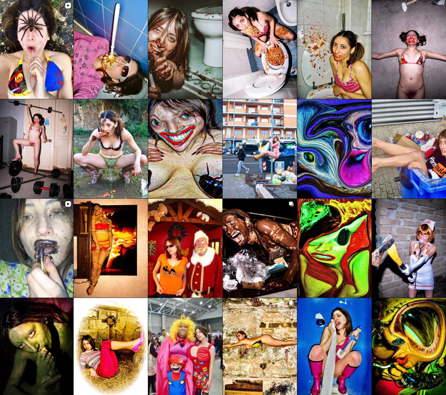 Il lavoro cresce per accostamenti semplici, oggetto, cibo, superficie, accessorio pop, e intorno il corpo che recita una postura tra provocazione e caricatura. Stivali di gomma, bikini, utensili domestici, alimenti buttati, tutto diventa materiale scenico, e il punto non è raccontare una storia lineare, è costruire una sensazione precisa. Quando entra il montaggio, o quando entra la selezione di una singola immagine, la regia fa una cosa chiara, spinge la scena un passo oltre, fino a far scattare la reazione, riso, fastidio, attrazione, disgusto.